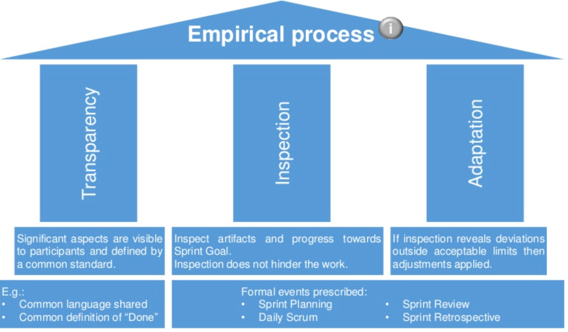 Scrumin periaatteet: transparency - inspection - adaptation