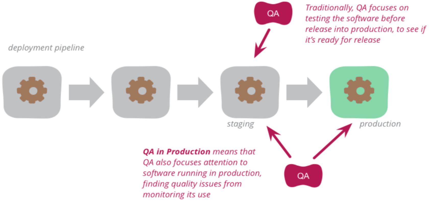 Kaavio on jo hieman vanha, alunperin vuodelta 2003 joten se ei tunne vielä käsitettä tuotannossa testaaminen.