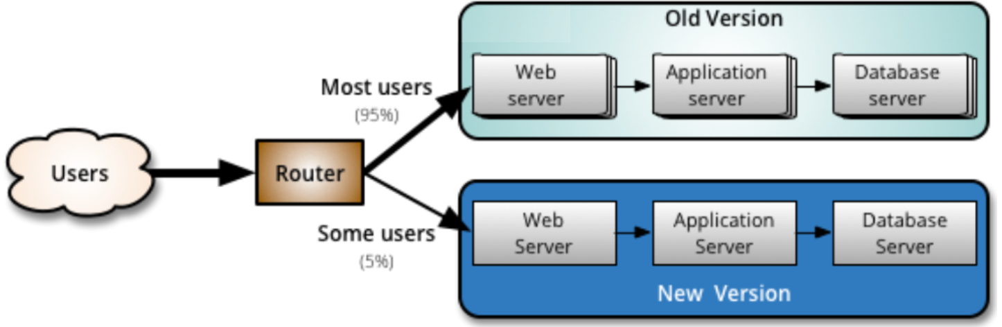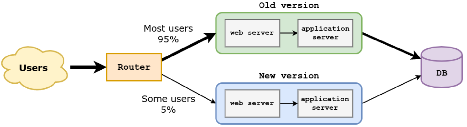 Uuden ominaisuuden sisältämää versiota monitoroidaan aktiivisesti ja jos ongelmia ei ilmene, vähitellen kaikki liikenne ohjataan uuteen versioon. Kuten blue-green-deploymentin tapauksessa, ongelmatilanteissa palautetaan käyttäjät aiempaan, toimivaksi todettuun versioon.