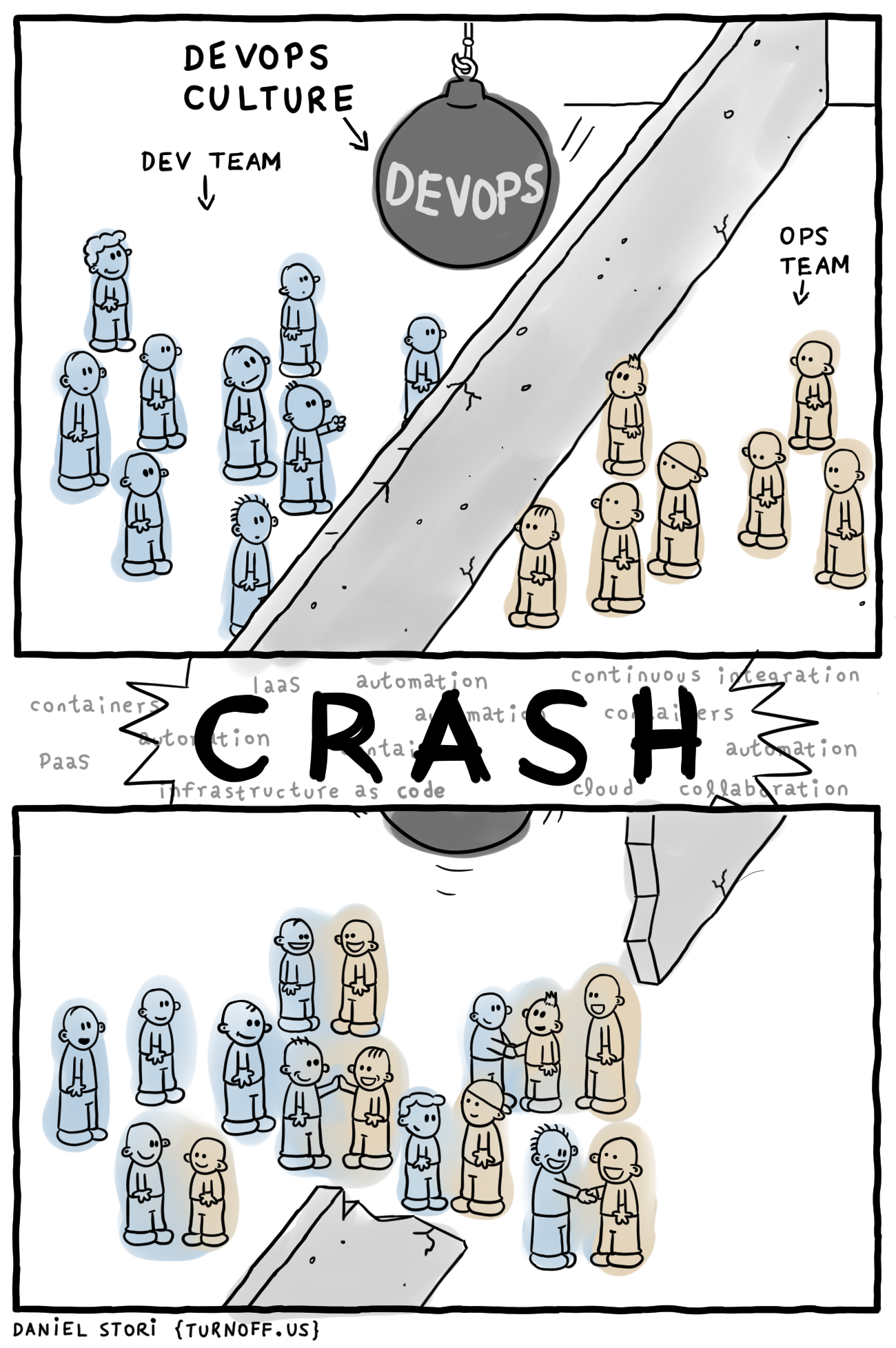 Perinteisesti yrityksissä on ollut tarkka erottelu sovelluskehittäjien (developers, dev) ja palvelinympäristöistä vastaavien järjestelmäylläpitäjien (operations, ops) välillä. On erittäin tavallista, että sovelluskehittäjät eivät pääse edes kirjautumaan tuotantopalvelimille ja sovellusten tuotantoon vieminen sekä esim. tuotantotietokantaan tehtävät skeeman päivitykset tapahtuvat ainoastaan ylläpitäjien toimesta.