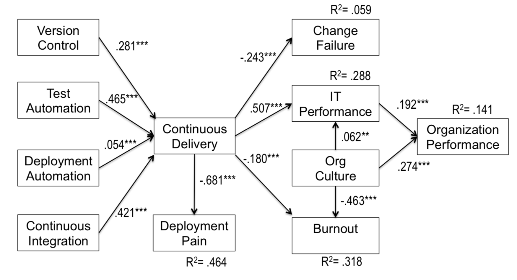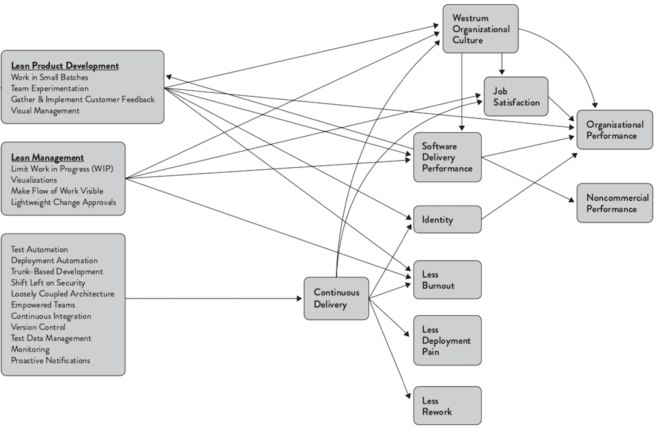 Ylläoleva kuva on vuonna 2016 ilmestyneestä artikkelista. Tässä vaiheessa Forsgrenin ja kumppaneiden tutkimus keskittyi siihen, miten tekniset DevOps-käytänteet vaikuttavat yrityksen tehokkuuteen.