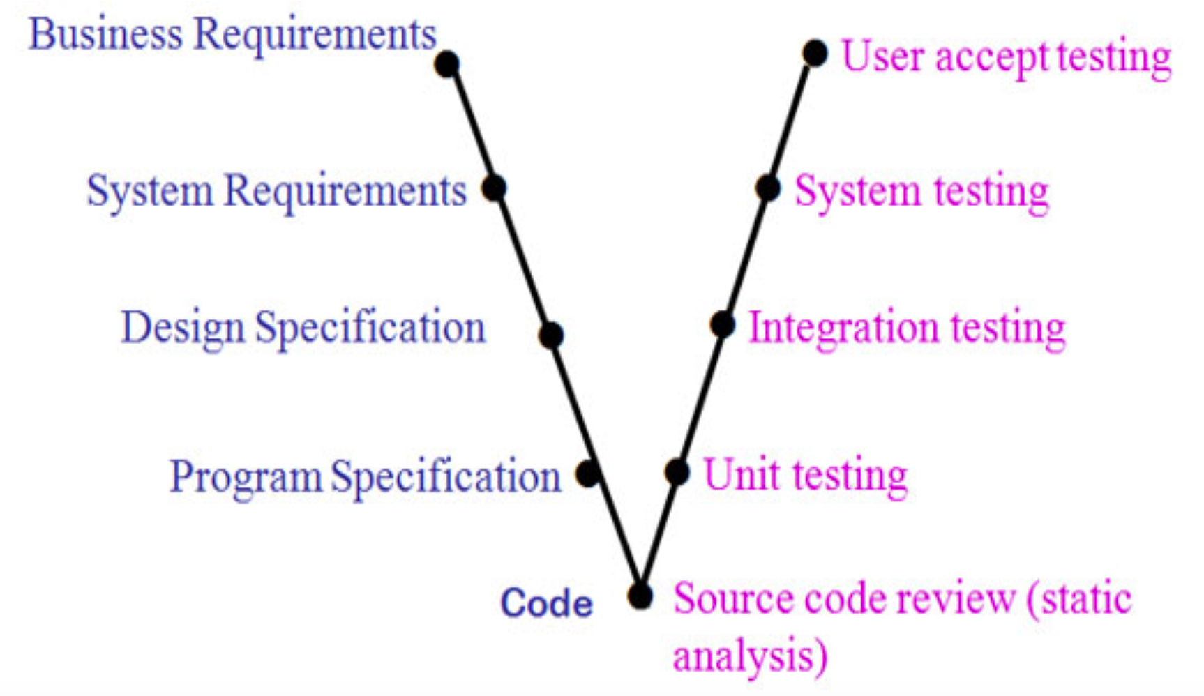 Testaus jakaantuu eri tasoihin sen mukaan, mikä testauksen ensisijaisena kohteena on. Ohjelmiston elinkaarta vesiputousmaisesti kuvaava testauksen V-malli havainnollistaa testauksen eri tasoja.