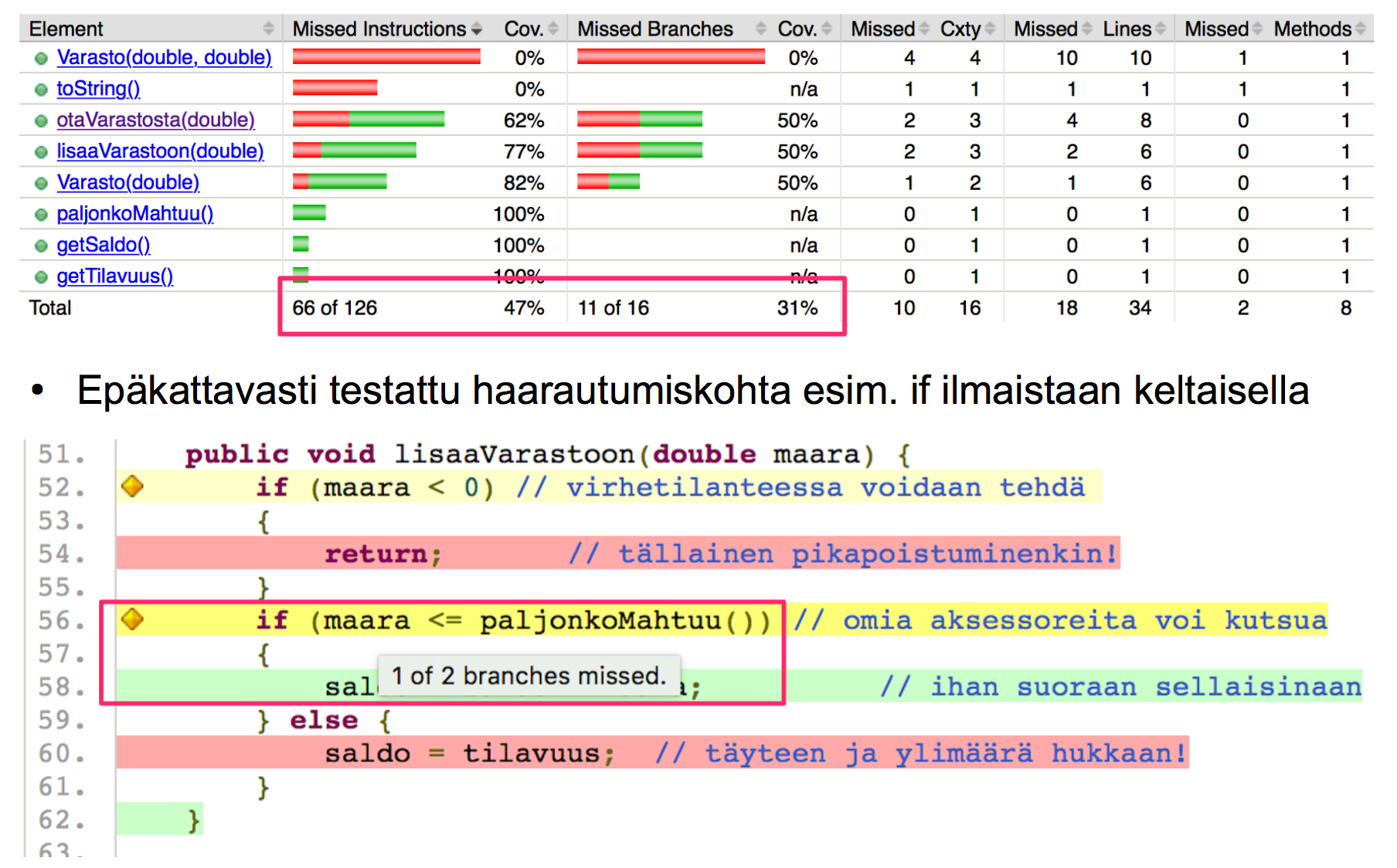 Testitapausten kannattaa olla mahdollisimman paljon testattavan komponentin oikeiden käyttöskenaarioiden kaltaisia. Pelkkiä testauskattavuutta kasvattavia testejä on turha tehdä.