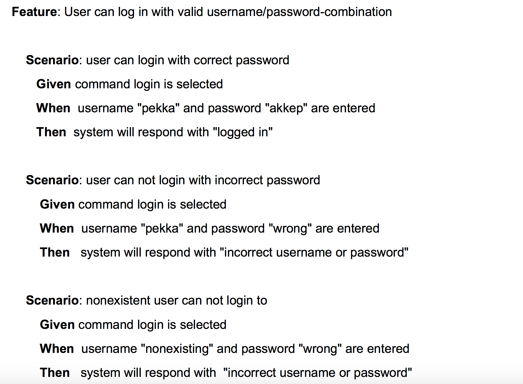 Yleensä järjestelmätestaus perustuu sovelluksen potentiaalisiin käyttöskenaarioihin. Jos vaatimukset on ilmaistu user storyina, on storyjen hyväksymiskriteereistä melko helppo muotoilla testejä, joiden avulla voidaan varmistaa, että ohjelmistolla on storyjen kuvaamat vaatimukset sekä tyypilliset virheskenaariot.
